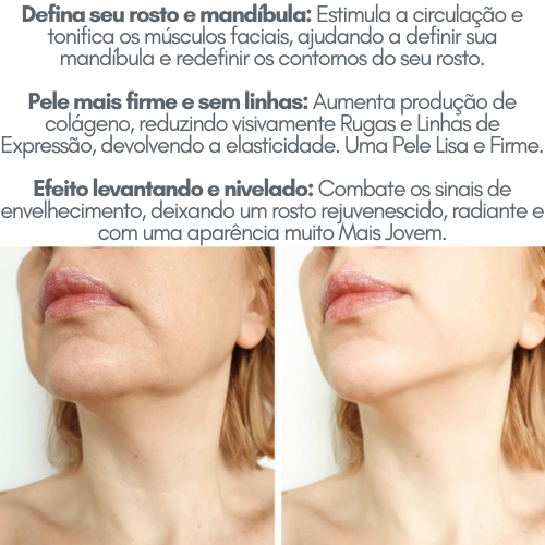 Revele Seu Brilho: Use Face Glow 2.0® diariamente e comece a notar os primeiros resultados em 1 semana, conquistando um rosto mais definido, com maxilar marcado e pele mais firme e radiante. Em apenas 10 minutos por dia, você alcançará resultados incríveis e notará sua beleza natural em destaque!